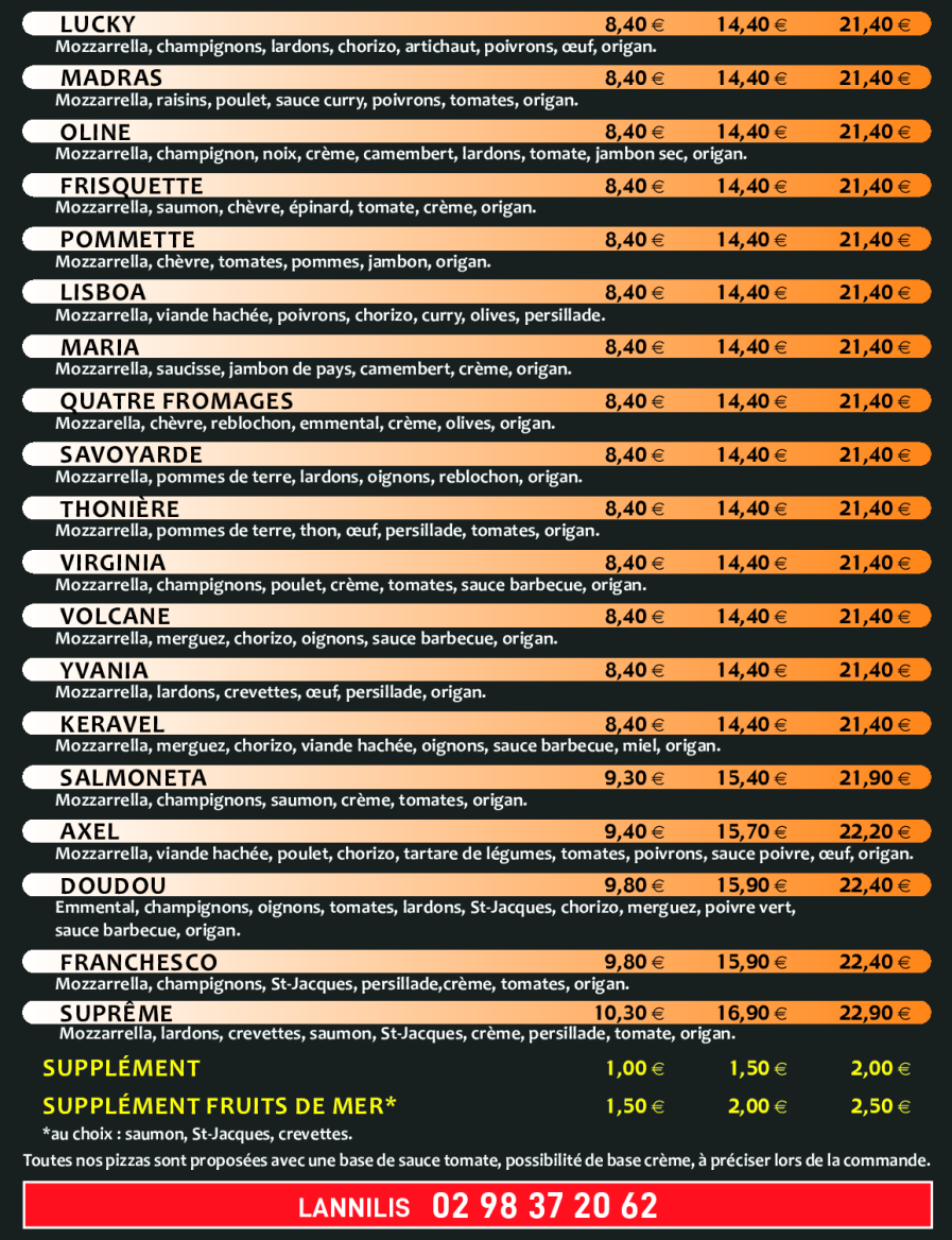 ©2014 - Lucky Pizza Lannilis - Site réalisé par Roïer K. Hébergé chez OVH -